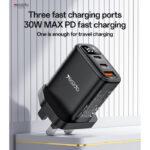 Stay powered up with the YC88 PD 30W Fast Charger, featuring 3 ports (2 USB and 1 Type-C) for simultaneous device charging. Equipped with Power Delivery (PD) technology, this UK Standard charger offers fast and efficient charging for smartphones, tablets, and more. The smart digital display shows real-time charging status, ensuring you’re always in control of your power.