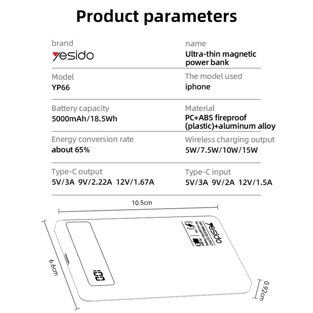 Type-C Output: 5V/3A, 9V/2.22A, 12V/1.67A
